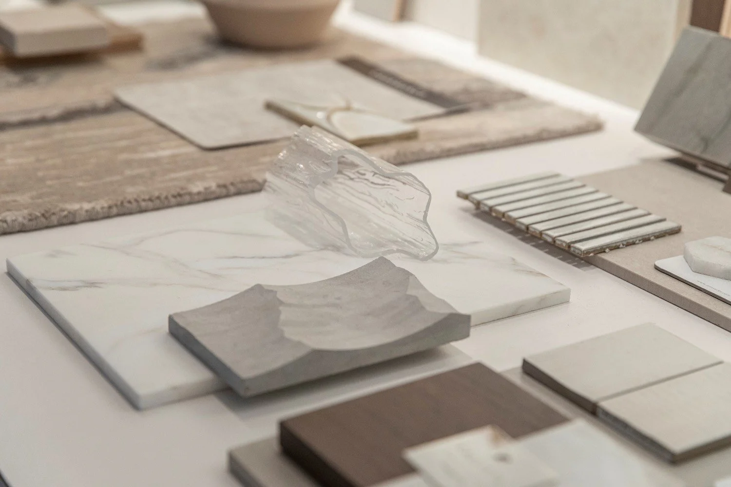 Our design process evolves into a thoughtful layering of information and creativity. We begin by gathering more insight from our clients by exploring their likes and dislikes, preferred colors, textures, and how they envision using each space. With this knowledge, we design the home holistically from the ground up, selecting all the hard materials that are permanently built into the architecture, such as flooring, tile, stone, cabinetry, plumbing, and lighting. Once those foundational elements are established, we shift into the soft materials starting with area rugs that anchor each room and establish the color palette and textures that will carry throughout the home. From there, furnishings, fabrics, and accents are thoughtfully layered to create interiors that are not only visually stunning but also deeply functional and personal.